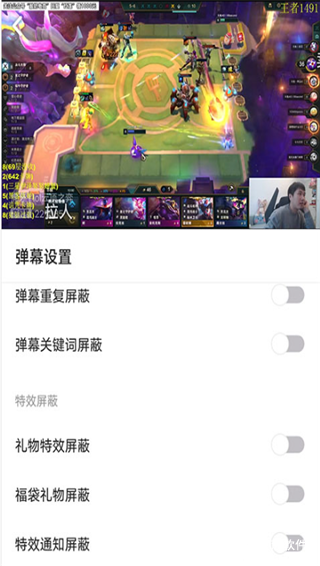 1、如果觉得满屏的特效会让你的观看体验不佳,那么可以在直播页面上找到画面功能,点击右下角的【弹幕设置】