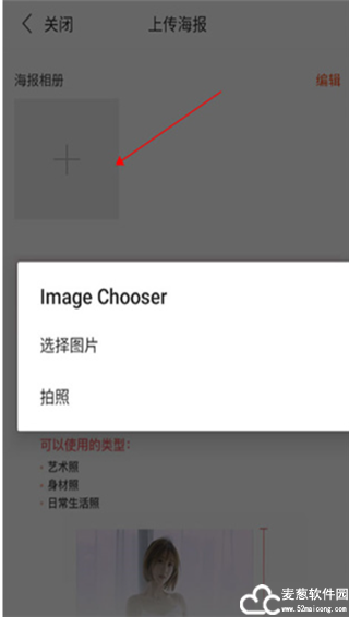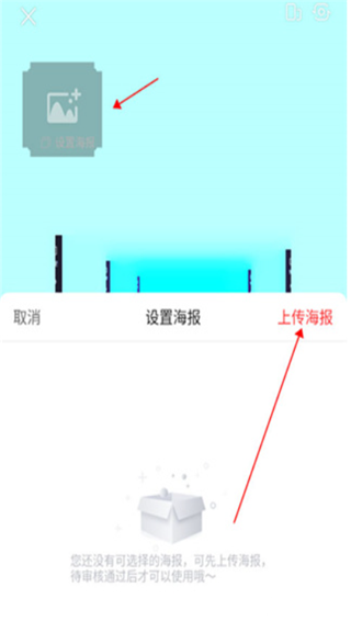 2、点击图上的空白处后,选择【上传海报】
