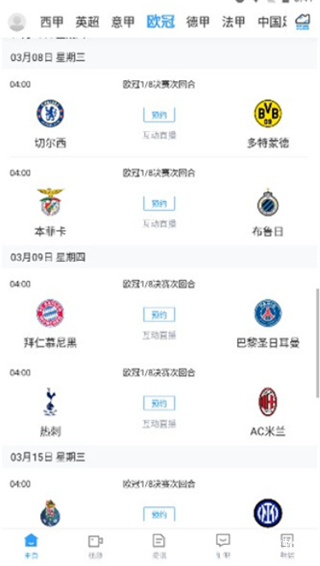 2、首页就会有当天的比赛转播,包含英超、西甲、德甲、法甲等顶级足球赛事。