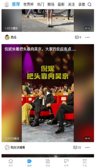 3、还有特色的视频板块,没有比赛的时候可以看些小视频打发无聊时间。