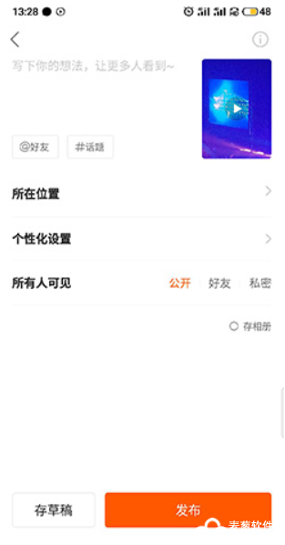 6、然后可以写下你的想法,也就是视频标题或者内容,是否想要添加位置,以及内容 是否公开,都由你自己决定。