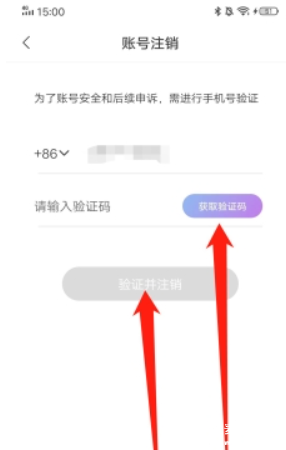 4、确定后,输入手机号获取验证码,然后点击【验证并注销】即可。