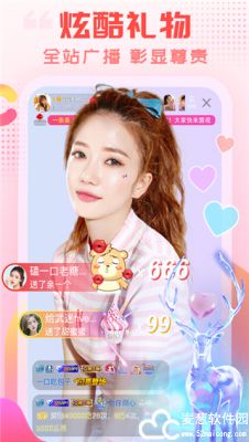 4、直播间升级全屏,主播的美尽收眼底;聊天,弹幕,礼物各色消息应有尽有,想怎么勾搭就怎么勾搭;攒满点赞槽,引爆直播气氛!