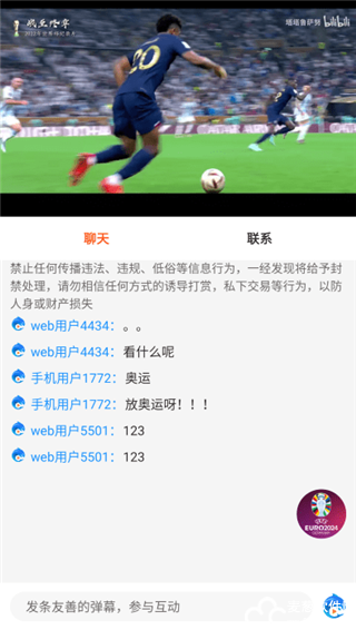 4、点击想要观看的比赛就可以直接进入,还可以发送弹幕参与聊天。