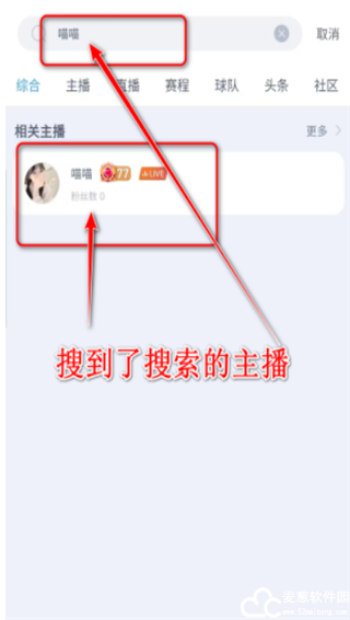 3、只要是平台内的主播都可以找到,比如”喵喵“,下方就是对应的主播。