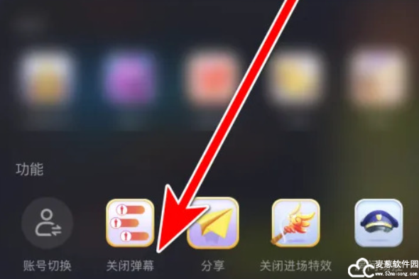3、点击后会弹出一个对话框,里面会有一些功能,比如账号切换、关闭弹幕、分享等。