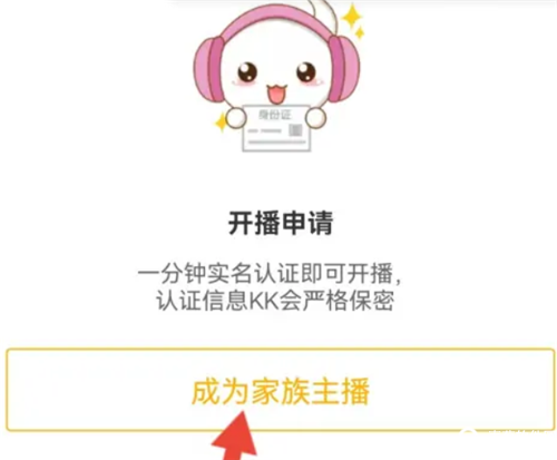 3、在开播申请页面,需要完成实名认证后即可开播,成为一名家族主播。