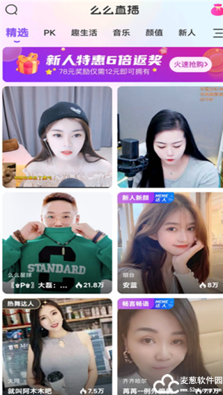 2、注册完成后进入平台,首页会有很多精彩的精选主播,都是颜值超高的小姐姐们。