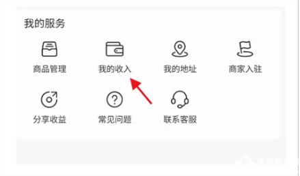 2、在我的服务里,大家可以看到商品管理、我的收入、我的地址等功能项,点击【我的收入】