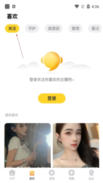 1、进入大厅后,我们点击下方的【喜欢】,这里都是你比较心仪的主播。