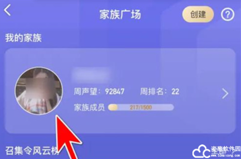 2、在【家族广场】,可以看到当下你正正身处于哪个家族,点击后面的箭头进入家族。