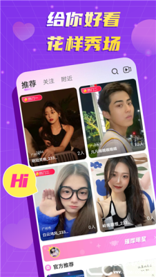 4、全新式的互动体验,多元化的线上玩法,汇集全国各地的超级美女主播,全民互动聊天。