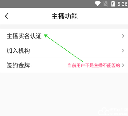 在我的页面中点击右上角的设置图标,进入设置页面中点击【主播功能】,在打开的新页面中点击【主播实名认证】,进行主播认证注册。认证通过后可以进行签约。