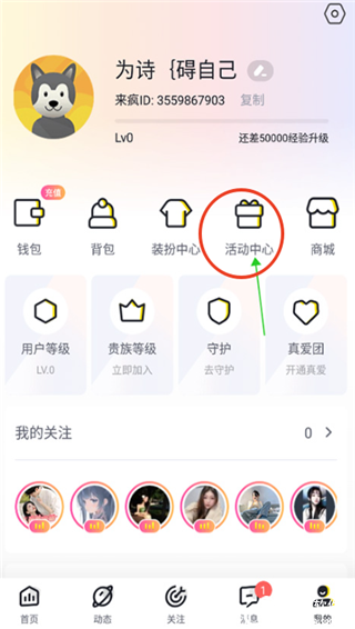 进入【我的】页面中点击【活动中心】,在打开新页面中参与相关活动也有机会获取红包或礼物。