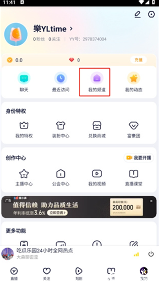 2、在个人主页里可以轻松查看到你的相关信息,比如最近访问、我的频道、我的动态等,点击【我的频道】