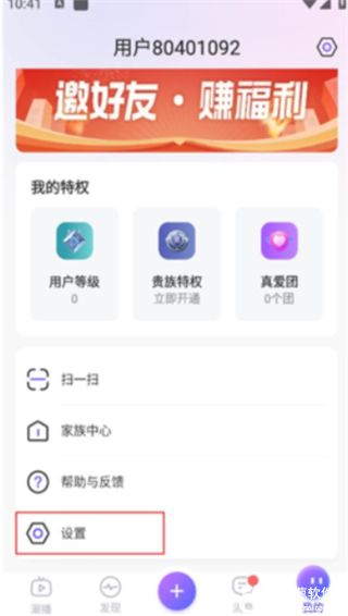 2、在用户页面找到【设置】