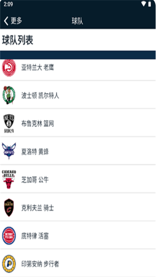 3、点击球队的话,可以看到NBA所有球队名,找到你想要查询的球队。