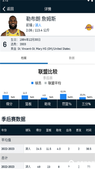5、如果想看下老詹的数据,可以点击球员进入个人主页。