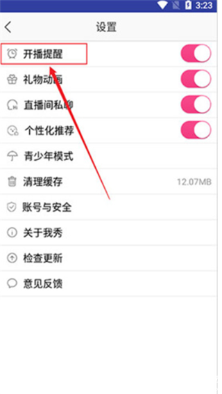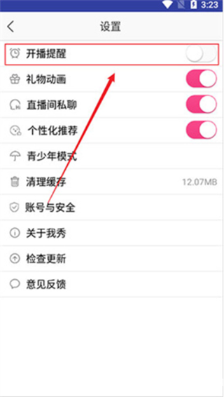 2、像开播提醒、礼物动画、直播间私聊以及个性化推荐都可以选择。