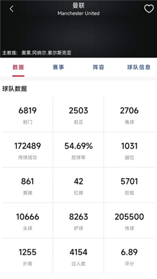 4、点击球队的话还可以看到各项数据,比如曼联射门次数、射正次数以及角球等。