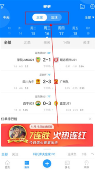 2、一共分为两大块篮球和足球,并且每天的比赛都会在下面呈现出来,方便大家查找。