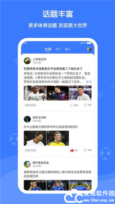2、纯粹足球社区,每个球迷朋友们都可以就自己喜欢的球队和球星进行探讨,梅西、C罗谁才是足坛第一人。