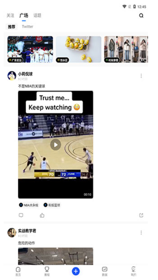 3、在【发现】里则是提供了一个互动娱乐场所,大家可以在广场里发布有趣的动态,关注喜欢的话题。
