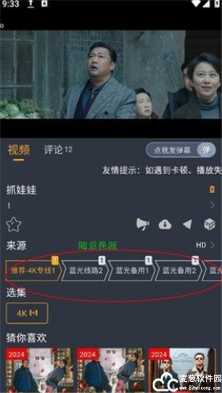 3、如果播放比较卡顿的话,可以切换播放源,获得最佳观影效果。