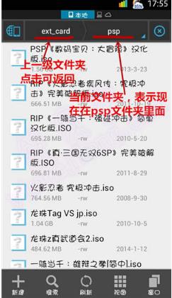最先下载psp游戏镜像系统(主要是。iso文件格式),将游戏拷贝或搬家到手机上的某一文件夹名称中,比如,我将在线下载的游戏放到手机上外界储存卡ext_card的psp文件夹(应用E)S手机新创建的文件夹管理器文件夹名称