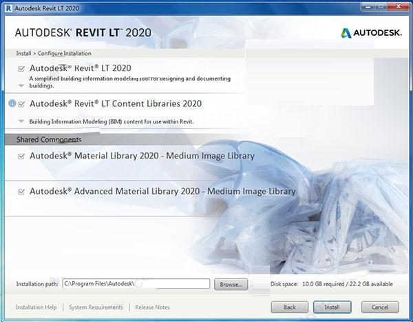 3.选择Autodesk Revit LT 2020组件以及安装路径,直接默认c盘即可