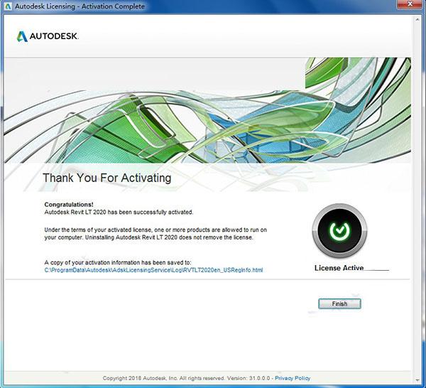 6.获取AutoCAD Revit LT 2020软件信息,点击关闭即可