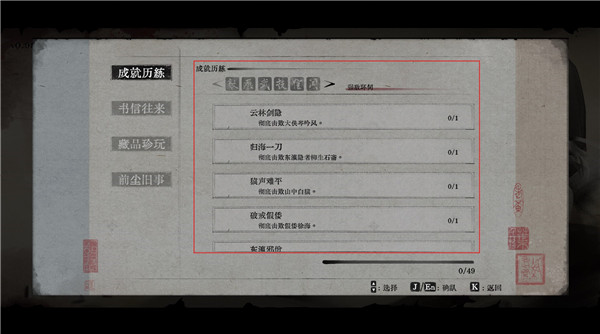 7.在“成就收藏”中,分为四大板块,分别是:成就历练、书信往来、藏品珍玩以及前尘旧事,其中最值得一说的就是“成就历练”,里面可以查看完成度哦;