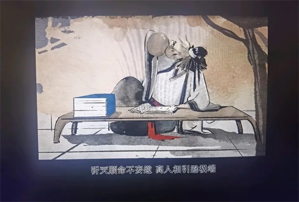 句式杂糅了写意画、水粉画、油画技法等各种艺术手法的国韵工艺美术,选用了国韵彩墨画式分镜头故事情节片头。